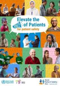 Ziua Mondială a siguranței pacienților 2023 este marcată pe 17 septembrie cu tema „Angajarea pacienților pentru siguranța pacienților”, ca recunoaștere a rolului crucial pe care îl joacă pacienții, familiile și îngrijitorii în siguranța asistenței medicale.